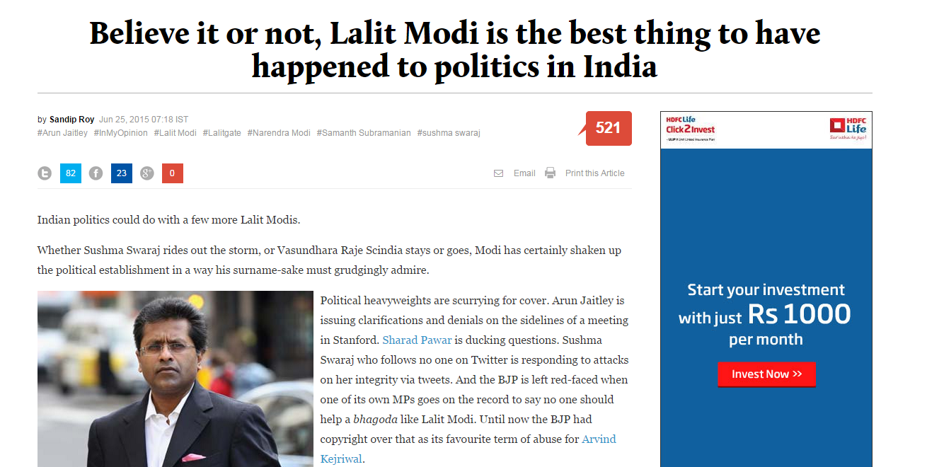 Journalists and media houses famous for writing anti-BJP stories are openly thanking Lalit Modi for acting like an angel. But, after reading comments written below their stories, it is clear that everyone is not foolish.