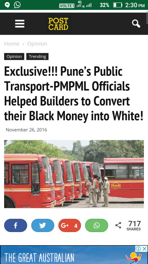 Perhaps, taking a cue from how Kejriwal allegedly used DTC to convert black money into white, officials from Pune’s public transport body PMPML helped builders and traders to convert their old Rs.500 and Rs. 1000 notes into coins and small denomination notes!