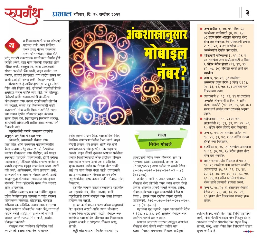 देशातील नामवंत संख्याशास्त्रज्ञांच्या यादीतील एक महत्वाचे नाव, गौतम आजाद, यांनी न्युमरोलॉजी प्रमाणे मोबाइल नंबर कसा निवडावा याबाबत मत मांडले
