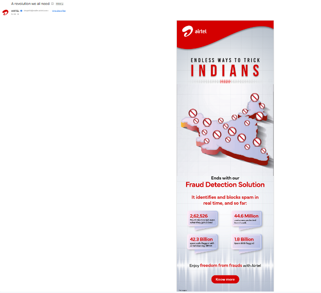 Most users consider Airtel’s emails to be excessive, despite activating DND. Yet, the messaging adapted over the last three years will help change customer sentiments toward Airtel’s email campaigns.